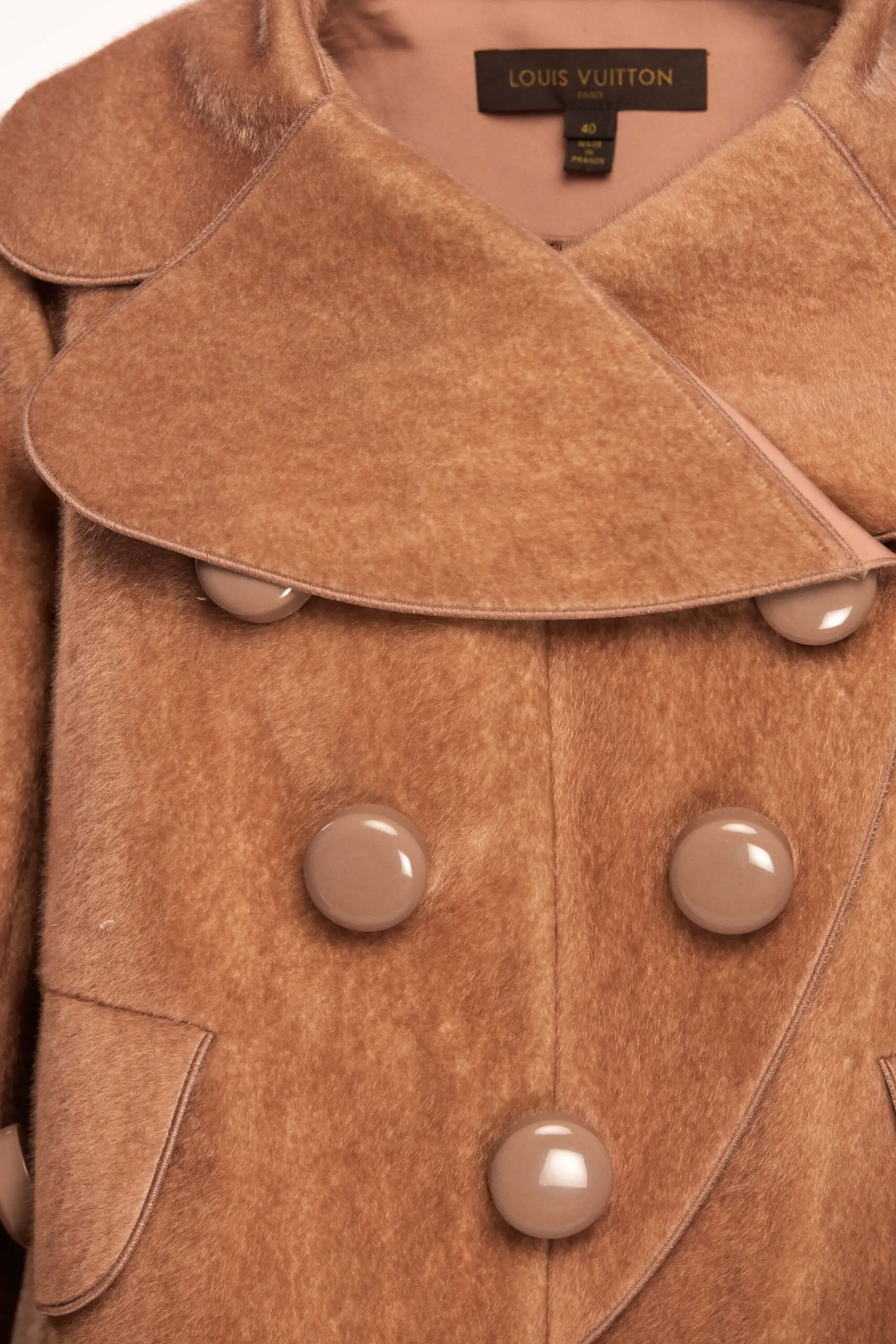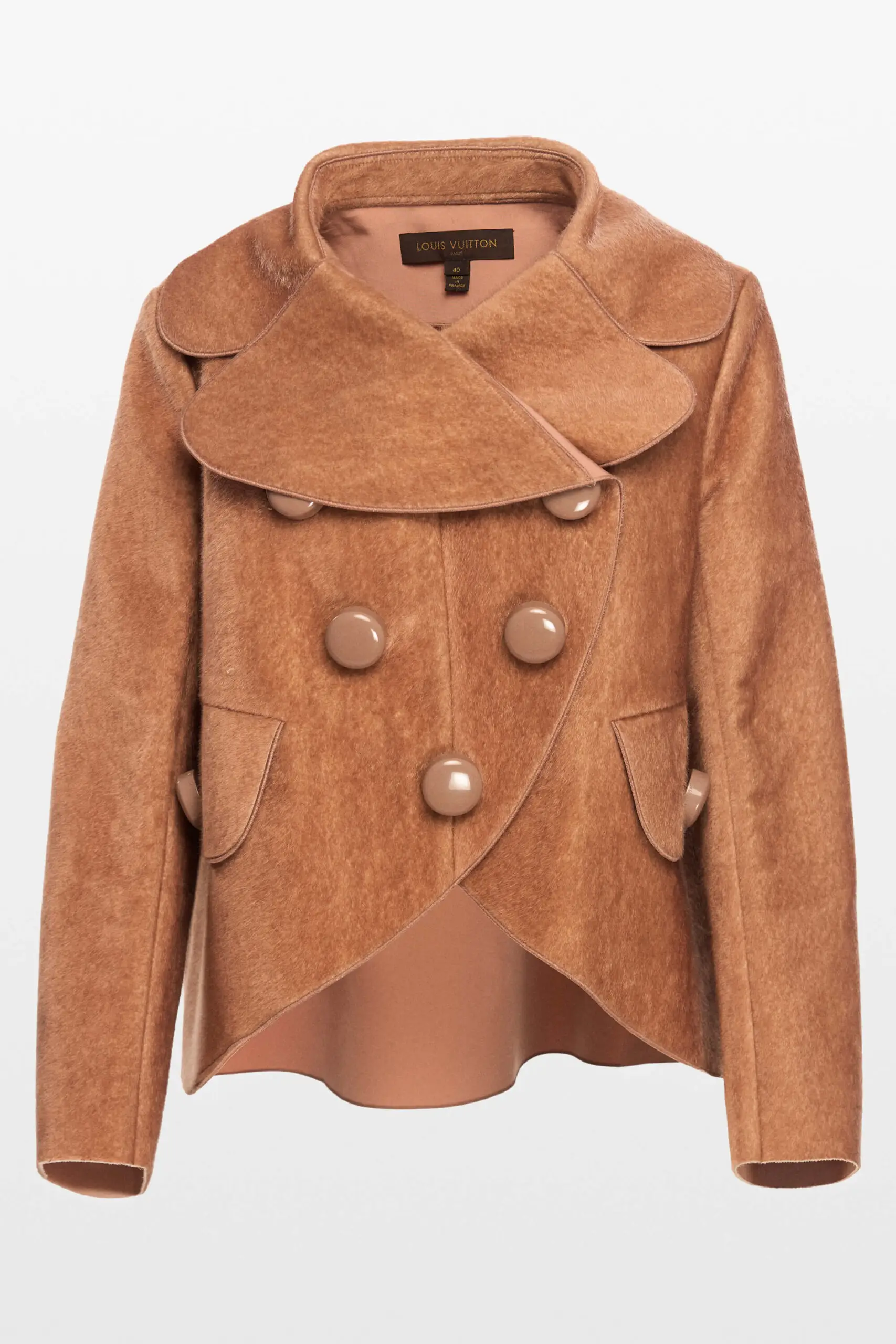 Preloved Louis Vuitton Dusty Rose Double Breasted Faux Fur is a standout piece from Fall 2012 collection, designed by Marc Jacobs, one of the brand’s most iconic and theatrical runway seasons. Inspired by the romantic grandeur of vintage railway travel, the jacket features exaggerated proportions, rich textures, and a layered, sculptural silhouette. The design showcases refined tailoring, oversized statement buttons, and beautifully balanced lines that reflect Louis Vuitton’s exceptional craftsmanship. The fabric has a luxurious, soft texture and structured yet fluid construction, allowing the jacket to hold its shape while remaining comfortable to wear. It is a versatile statement piece that can elevate both elegant and modern looks. A true collector’s item, this jacket embodies timeless design, runway heritage, and the unmistakable artistry of Louis Vuitton ateliers.